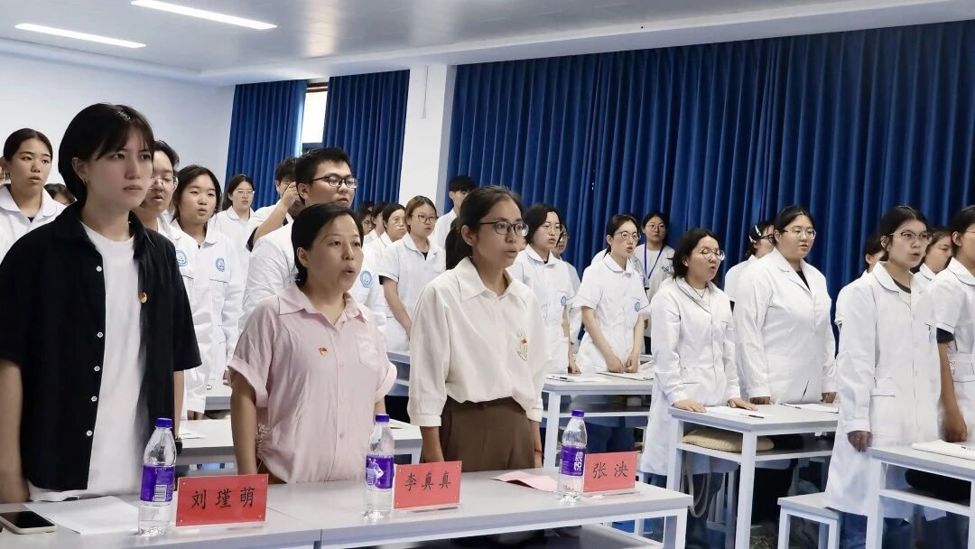 学工办主任刘瑾萌在发言时强调,党课是严肃的政治教育,全体学员应严守学习纪律,端正学习态度,做到学思用结合、知信行统一,切实提升政治素养与党性修养。2025级护理专业学生代表史昕哲表示,作为未来的护理工作者,将以专业服务人民健康,以实干诠释报国之志。