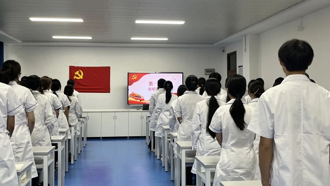 党总支书记张泱以《“青春筑梦,技能报国”——新时代护理青年的使命与担当》为题讲授开班第一课。她强调,新时代护理青年应坚定理想信念,锤炼专业技能,涵养“敬佑生命、救死扶伤”的职业精神,将党性修养融入专业学习全过程,以实际行动践行“健康所系、性命相托”的誓言。