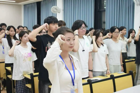 活动尾声,全体参会人员起立,高举右拳,在主持人的带领下庄严宣誓,铿锵有力的誓言响彻整个教学楼,传递出学生们抵制毒品、守护健康的坚定决心。宣誓结束后,工作人员播放禁毒视频,进一步巩固本次大赛的宣传教育效果。