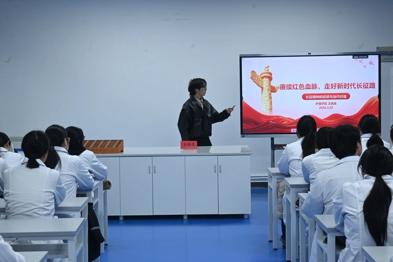 为传承红色基因、厚植家国情怀,护理学院于3月20日中午在实训楼北207教室开展《长征精神的延续与当代价值》专题党课。本次党课由程鑫豪主持,王骁逸老师主讲。