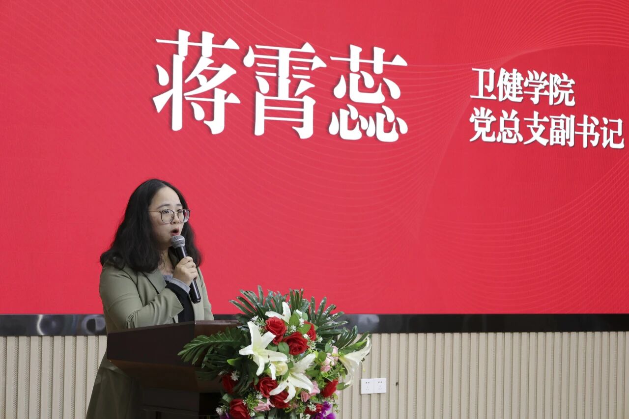 卫生与健康学院党总支副书记蒋霄蕊从“稳、融、特、实”四个维度,分享了在校园安全、思政与学风融合、特色活动打造、实践育人等方面的工作做法。