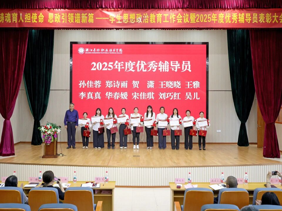 为深入落实立德树人根本任务,扎实推进新时代高校学生思想政治教育工作,着力打造高素质专业化辅导员队伍,近日,我校在第二报告厅隆重召开学生思想政治教育工作会议暨2025年度优秀辅导员表彰大会。学校党委副书记吴有恩,相关职能部门负责人、各二级学院党总支书记(副书记)及全体辅导员参加会议,会议由学生工作处处长章剑飞主持。