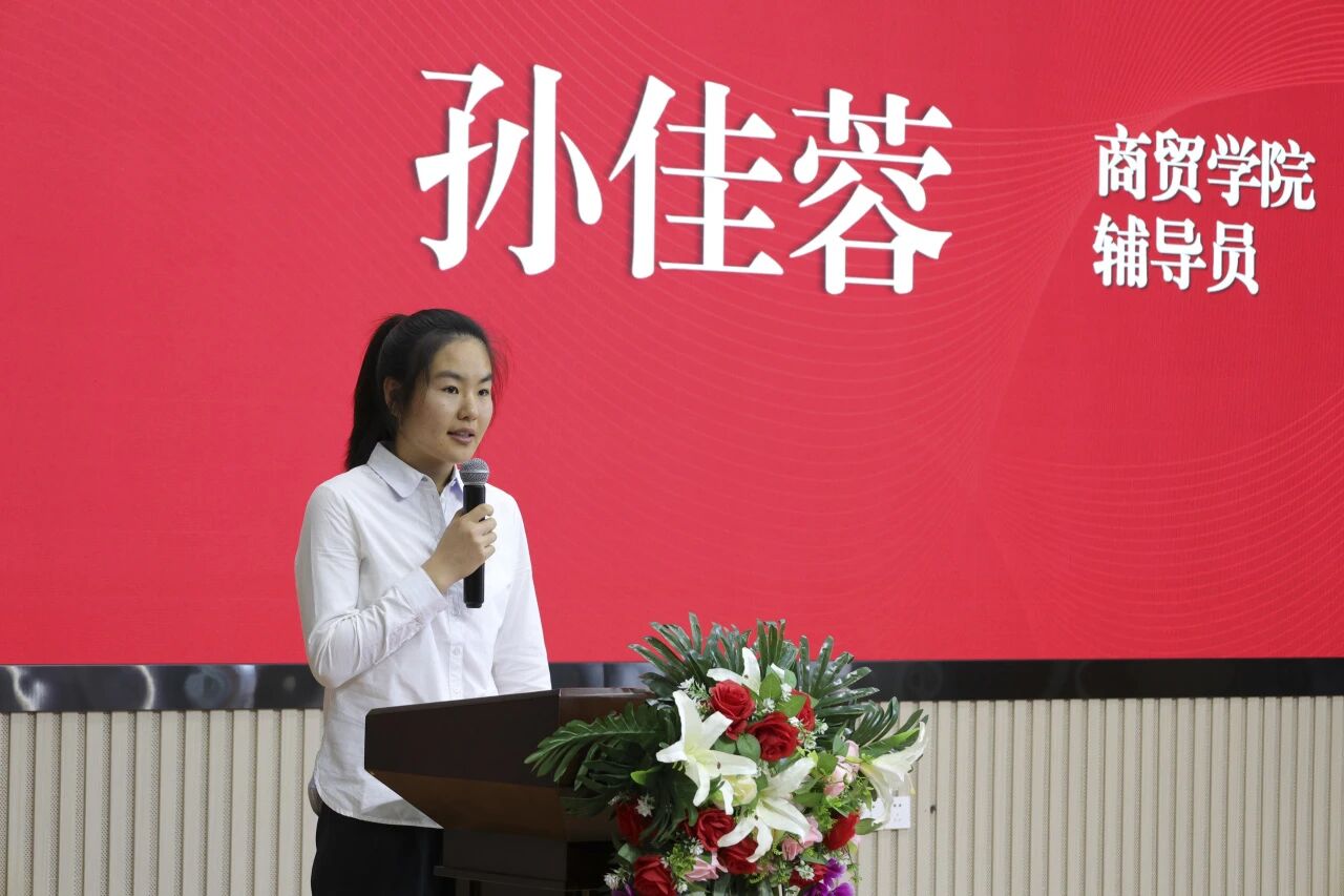 商务与贸易学院孙佳蓉作为优秀辅导员代表,分享思政育人与学生管理工作心得。