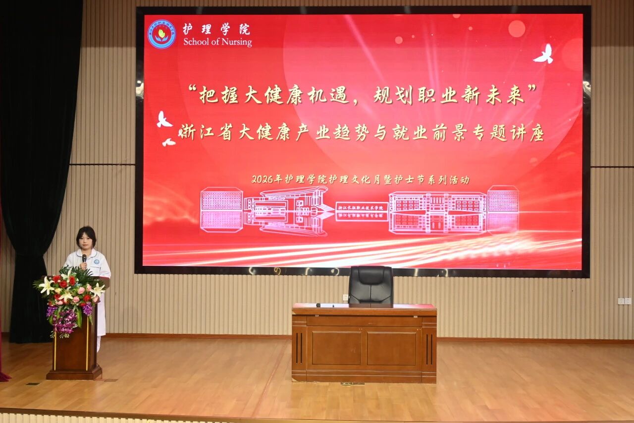 为帮助护理专业学子明晰大健康时代就业方向,提升就业竞争力,2026年4月15日,护理学院特邀浙江中医药大学裘兴梅副教授,在第二报告厅开展“把握大健康机遇,规划职业新未来”专题讲座。