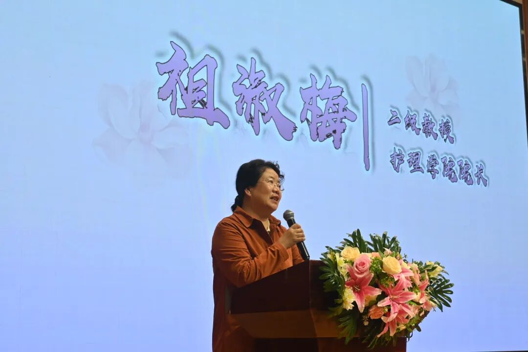 在紧张的评分与统分环节之后,院长祖淑梅代表评审团对本次大赛进行了现场点评。她充分肯定了参赛选手们在仪容仪表、职业仪态及护理专项礼仪规范等方面的出色表现,同时结合临床护理实际,从细节入手,指出了进一步提升的方向。祖院长强调,礼仪是护理职业素养的重要体现,希望同学们以赛促学、以礼修身,把大赛中展现出的专业风采内化为日常行为习惯,为未来成长为有温度、有技能、有担当的高素质护理人才打下坚实基础。