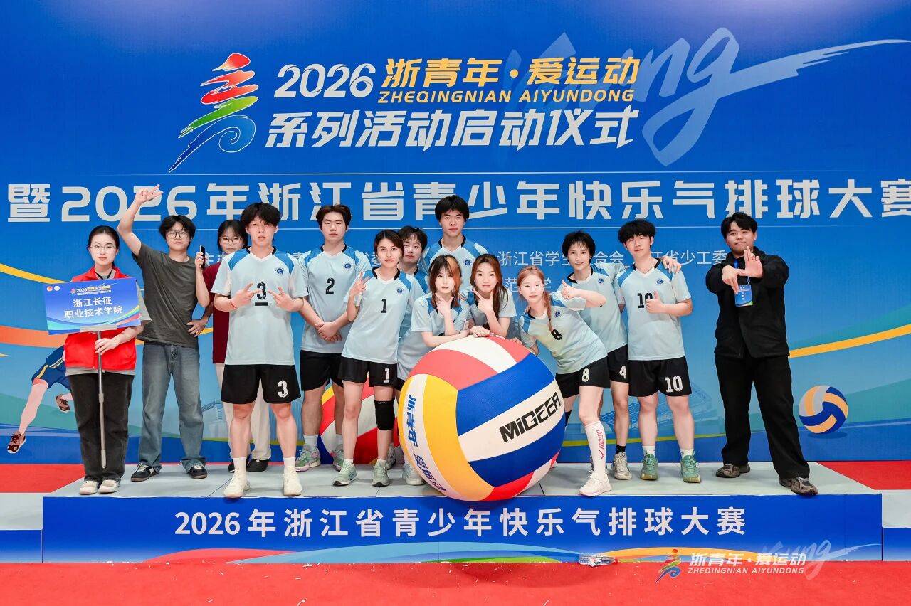 近日,由共青团浙江省委、浙江省体育局、浙江省学生联合会、浙江省少工委主办的“浙青年・爱运动”2026年浙江省青少年快乐气排球大赛在杭州师范大学圆满落幕。本次大赛汇聚全省64所高校的850余名师生参赛,我校气排球代表队获省决赛(乙组)八强。施仲浩、钱嘉乐获“优秀运动员”,林辉翔获“优秀教练员”荣誉称号。