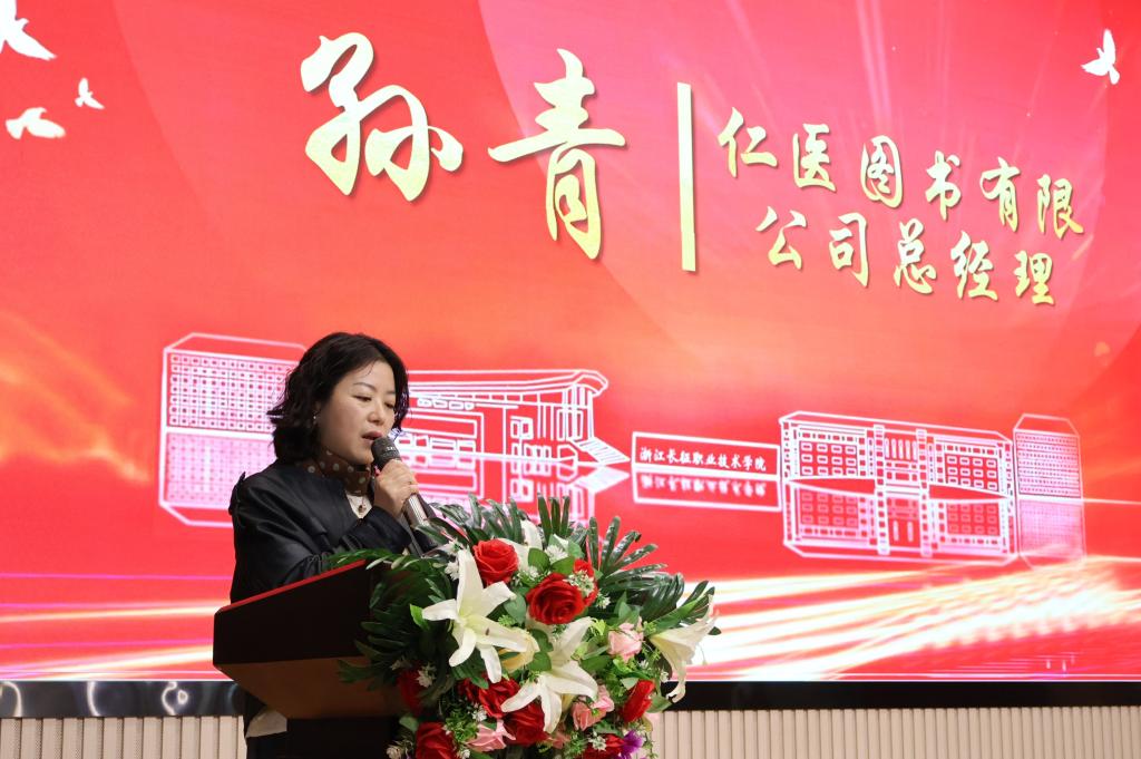 捐赠仪式上,孙青总经理首先致辞。她阐述了本次捐赠的初衷,表达了出版单位服务职业教育、助力医学人才培养的社会责任,并寄语广大师生深耕专业、学以致用,在阅读与实践中不断成长。