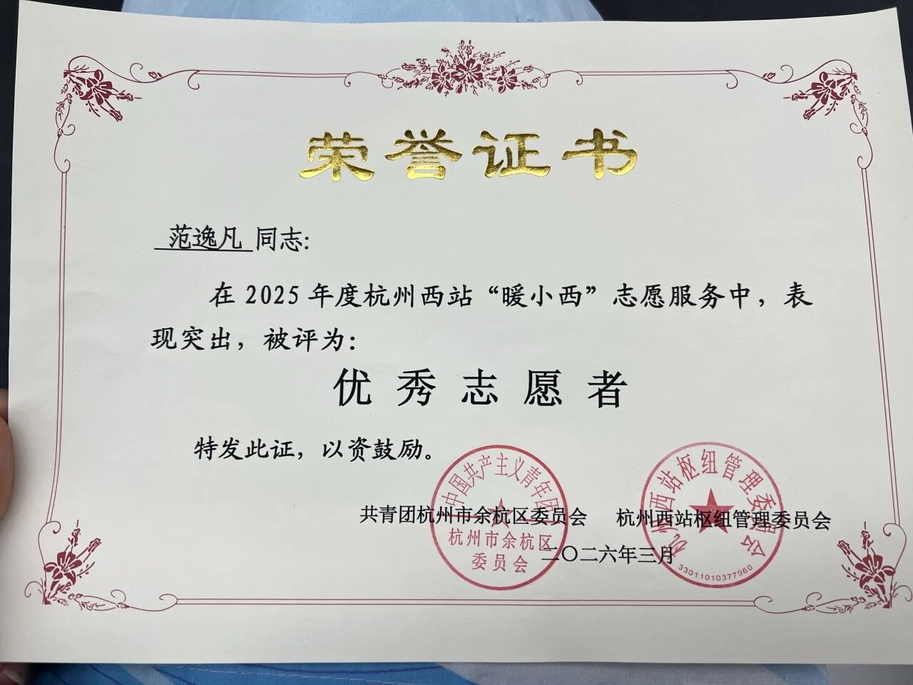 后来,我在杭州西站担任志愿者。面对南来北往的旅客,我需要快速熟悉每条通道和换乘路线,用清晰准确的指引帮助他们顺利出行。那段经历极大地锻炼了我的沟通能力和临场应变能力。