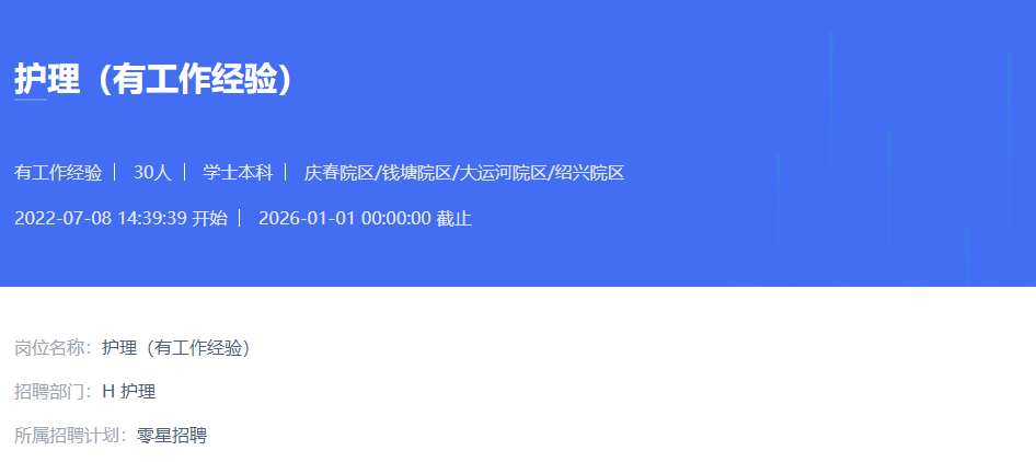 【招聘信息】三甲医院 | 浙大邵逸夫医院,招聘护士30名(截止26年1月1日)