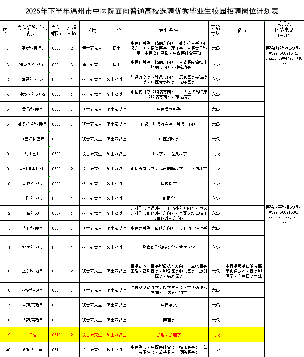 1.咨询电话:温州市中医院人事科,0577-56671500。