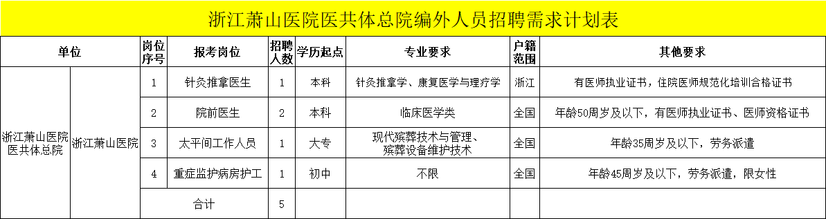 2025年浙江萧山医院医共体总院公开招聘编外人员5人公告
