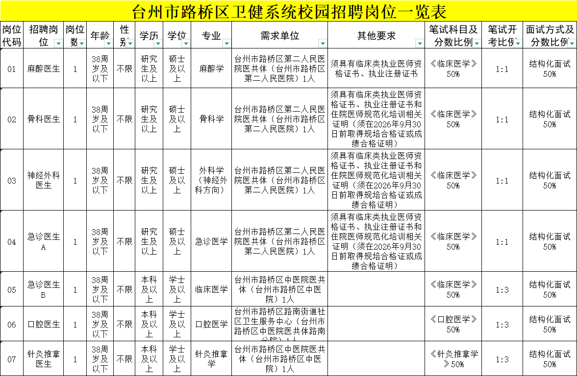 2025年台州市路桥区卫健系统校园招聘卫生专业人员7人公告