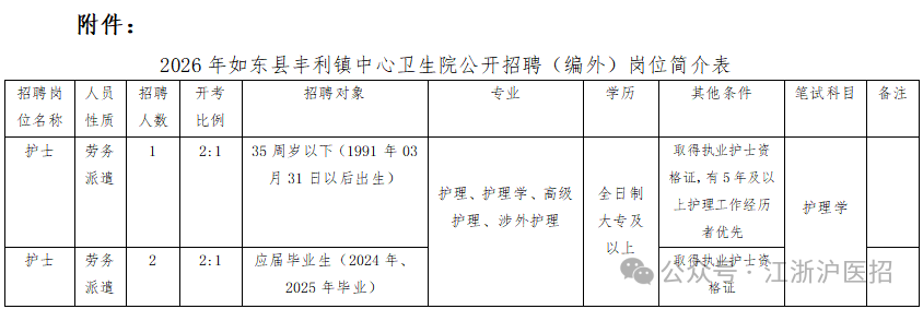 (2)应届毕业生2名:2024届、2025届全日制大专及以上毕业生,护理相关专业,已取得护士执业资格证书。