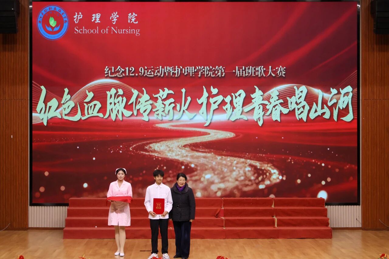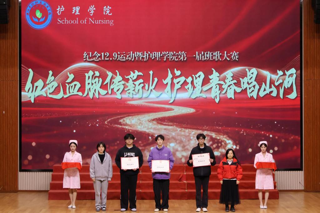 为传承红色基因、厚植家国情怀,引导护理学子铭记历史使命、勇担时代责任,在第 90 个一二・九运动纪念日来临之际,护理学院于 12 月 9 日在第一报告厅隆重举办 “红色血脉传薪火,护理青春唱山河” 纪念一二・九主题活动暨班歌大赛。活动以红色精神为引领,通过多元艺术形式,重温革命历史、抒发爱国情怀,展现了新时代护理青年的责任担当与精神风貌。
