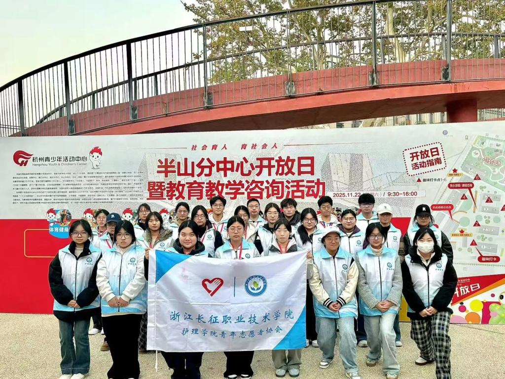 为践行健康中国战略,深化志愿服务与专业实践的融合,11 月 22 日,杭州青少年活动中心半山分中心开放日活动圆满举行。护理学院志愿者服务队受邀参与,以专业素养为支撑、以真诚服务为纽带,为活动提供全方位保障,在普及健康知识、护航青少年成长的过程中,生动诠释了护理学子的社会责任与青春担当。