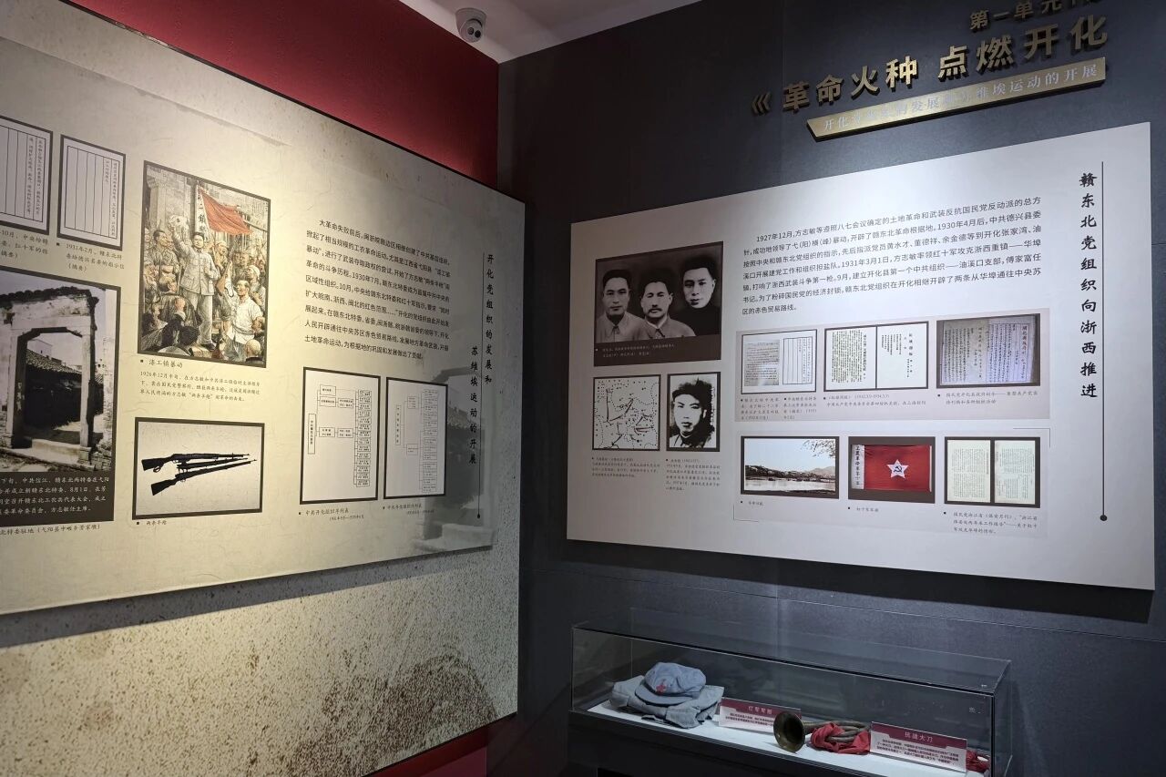 走进纪念馆,各展区的文物史料静静诉说着浙西革命的热血过往。“星火初燃 浙西觉醒”展区里,泛黄的革命书籍、珍贵的宣言手稿与老照片,定格了先辈们在白色恐怖中秘密组建党组织、深入群众播撒革命火种的初心瞬间;“烽火征程 浴血抗争”展区内,锈迹斑斑的步枪、字迹模糊的密信、简陋的游击装备,还原了方志敏等革命先辈率领红军在浙西开展游击战争的峥嵘岁月,尽显浙西军民不畏牺牲、坚韧不拔的铮铮气节;“解放浙西 迎接曙光”展区的作战地图、前线支援实物与珍贵影像,生动再现了浙西军民同心同德、携手抗敌,最终迎来解放的胜利时刻;“薪火相传 续写新篇”展区则以视频、展板、成果展示等多种形式,展现新时代浙西儿女赓续红色血脉,在乡村振兴、产业发展、基层治理、志愿服务等各个领域勇挑重担、奋勇争先的鲜活实践,让革命精神在新时代落地生根、生生不息。