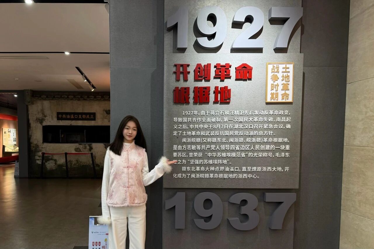 此次浙西革命斗争纪念馆之行,让我重温了浙西革命的壮阔历史,深刻领悟了浙西革命精神的内涵。这份不畏牺牲、坚韧不拔的精神,早已成为激励浙西青年勇毅前行的力量。作为新时代青年,我将把革命精神融入学习生活,以青春之我、奋斗之我扛起使命担当,传承红色薪火,让浙西革命精神在新时代绽放新光芒。